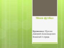 Мини-футбол Кружковод Щуклин Дмитрий Александрович Вожатый 4 отряда