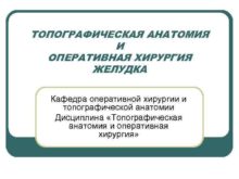 ТОПОГРАФИЧЕСКАЯ АНАТОМИЯ И ОПЕРАТИВНАЯ ХИРУРГИЯ ЖЕЛУДКА Кафедра оперативной
