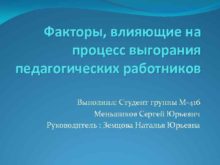 Факторы влияющие на процесс выгорания педагогических работников Выполнил