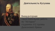 Деятельность Кутузова Внеаудиторная самостоятельная работа по Истории студентки