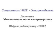 Специальность 140211 — Электроснабжение Дисциплина Математические задачи электроэнергетики