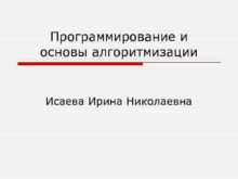 Программирование и основы алгоритмизации Исаева Ирина Николаевна