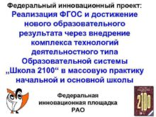 Федеральный инновационный проект Реализация ФГОС и достижение нового