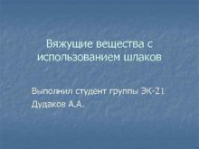 Вяжущие вещества с использованием шлаков Выполнил студент группы