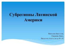 Субрегионы Латинской Америки Колесник Анастасия Смирнова Ольга Подъячева