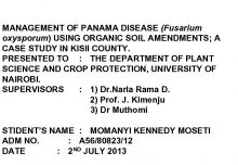MANAGEMENT OF PANAMA DISEASE Fusarium oxysporum USING ORGANIC
