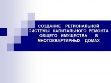 СОЗДАНИЕ РЕГИОНАЛЬНОЙ СИСТЕМЫ КАПИТАЛЬНОГО РЕМОНТА ОБЩЕГО ИМУЩЕСТВА В