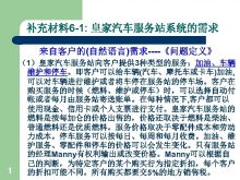 补充材料 6 -1 皇家汽车服务站系统的需求 来自客户的 自然语言 需求—- 问题定义 1 皇家汽车服务站向客户提供 3种类型的服务 加油 车辆 维护和停车 即客户可以给车辆 汽车 摩托车或卡车 加油