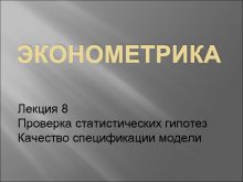 ЭКОНОМЕТРИКА Лекция 8 Проверка статистических гипотез Качество спецификации