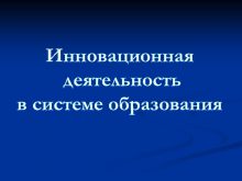 Инновационная деятельность в системе образования Цель актуализация