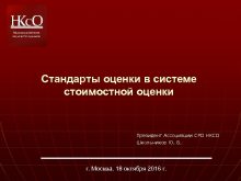 Стандарты оценки в системе стоимостной оценки Президент Ассоциации