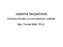 Jaderná bezpečnost Ochrana člověka za mimořádných událostí Mgr