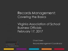 Records Management Covering the Basics Virginia Association of