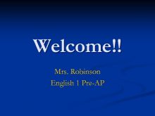Welcome Mrs Robinson English 1 Pre-AP Contact