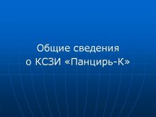 Общие сведения о КСЗИ Панцирь-К КСЗИ Панцирь-К