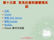 第十五章 常見的資料庫管理系 統 目的 Oracle
