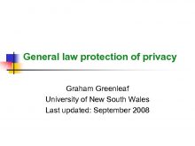 General law protection of privacy Graham Greenleaf University