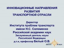 ИННОВАЦИОННЫЕ НАПРАВЛЕНИЯ РАЗВИТИЯ ТРАНСПОРТНОЙ ОТРАСЛИ Директор Института проблем
