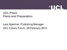 UCL Press Plans and Preparation Lara Speicher Publishing