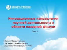 Инновационные направления научной деятельности в области лазерной физики
