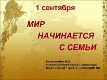 1 сентября МИР НАЧИНАЕТСЯ С СЕМЬИ Калашникова Н