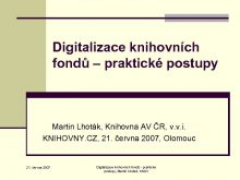 Digitalizace knihovních fondů praktické postupy Martin Lhoták