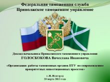 Федеральная таможенная служба Приволжское таможенное управление Доклад начальника
