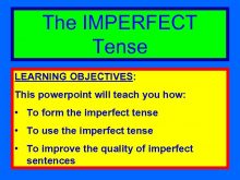 The IMPERFECT Tense LEARNING OBJECTIVES This powerpoint will