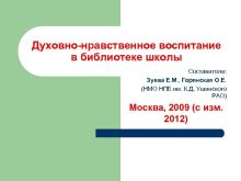 Духовно-нравственное воспитание в библиотеке школы Составители Зуева Е