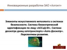 Инновационные разработки ЗАО Алгонт Элементы искусственного интеллекта в