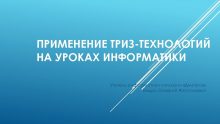 ПРИМЕНЕНИЕ ТРИЗ-ТЕХНОЛОГИЙ НА УРОКАХ ИНФОРМАТИКИ Учитель информатики гимназии