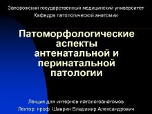 Запорожский государственный медицинский университет Кафедра патологической анатомии Патоморфологические