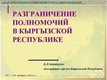 ДЕЦЕНТРАЛИЗАЦИЯ И РАЗВИТИЕ МЕСТНОГО САМОУПРАВЛЕНИЯ РАЗГРАНИЧЕНИЕ ПОЛНОМОЧИЙ В