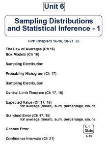 Unit 6 Sampling Distributions and Statistical Inference —