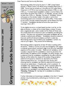 Dear Parents and Community Members Volume 1 Issue
