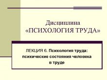 Дисциплина ПСИХОЛОГИЯ ТРУДА ЛЕКЦИЯ 6 Психология труда психические