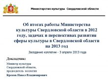 Министерство культуры Свердловской области Об итогах работы Министерства