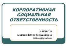 КОРПОРАТИВНАЯ СОЦИАЛЬНАЯ ОТВЕТСТВЕННОСТЬ к полит н Биденко Юлия