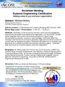 November Meeting Systems Engineering Certification Adding value to