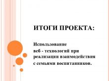 ИТОГИ ПРОЕКТА Использование веб — технологий при реализации