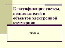 Классификация систем пользователей и объектов электронной коммерции ТЕМА