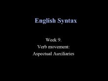 English Syntax Week 9 Verb movement Aspectual Auxiliaries