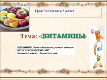 Урок биологии в 8 класс Тема ВИТАМИНЫ