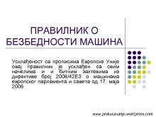 ПРАВИЛНИК О БЕЗБЕДНОСТИ МАШИНА Усклађеност са прописима Европске