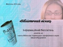 Вересень 2014 року Бібліотечний вісник Інформаційний бюллетень додаток