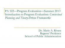 PA 522 Program Evaluation Summer 2013 Introduction to Program Evaluation
