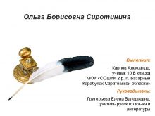 Ольга Борисовна Сиротинина Выполнил Карпов Александр ученик 10