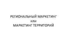 РЕГИОНАЛЬНЫЙ МАРКЕТИНГ или МАРКЕТИНГ ТЕРРИТОРИЙ PLACE MARKETING