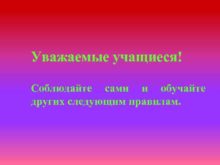 Уважаемые учащиеся Соблюдайте сами и обучайте других следующим