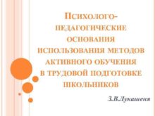 ПСИХОЛОГОПЕДАГОГИЧЕСКИЕ ОСНОВАНИЯ ИСПОЛЬЗОВАНИЯ МЕТОДОВ АКТИВНОГО ОБУЧЕНИЯ В ТРУДОВОЙ